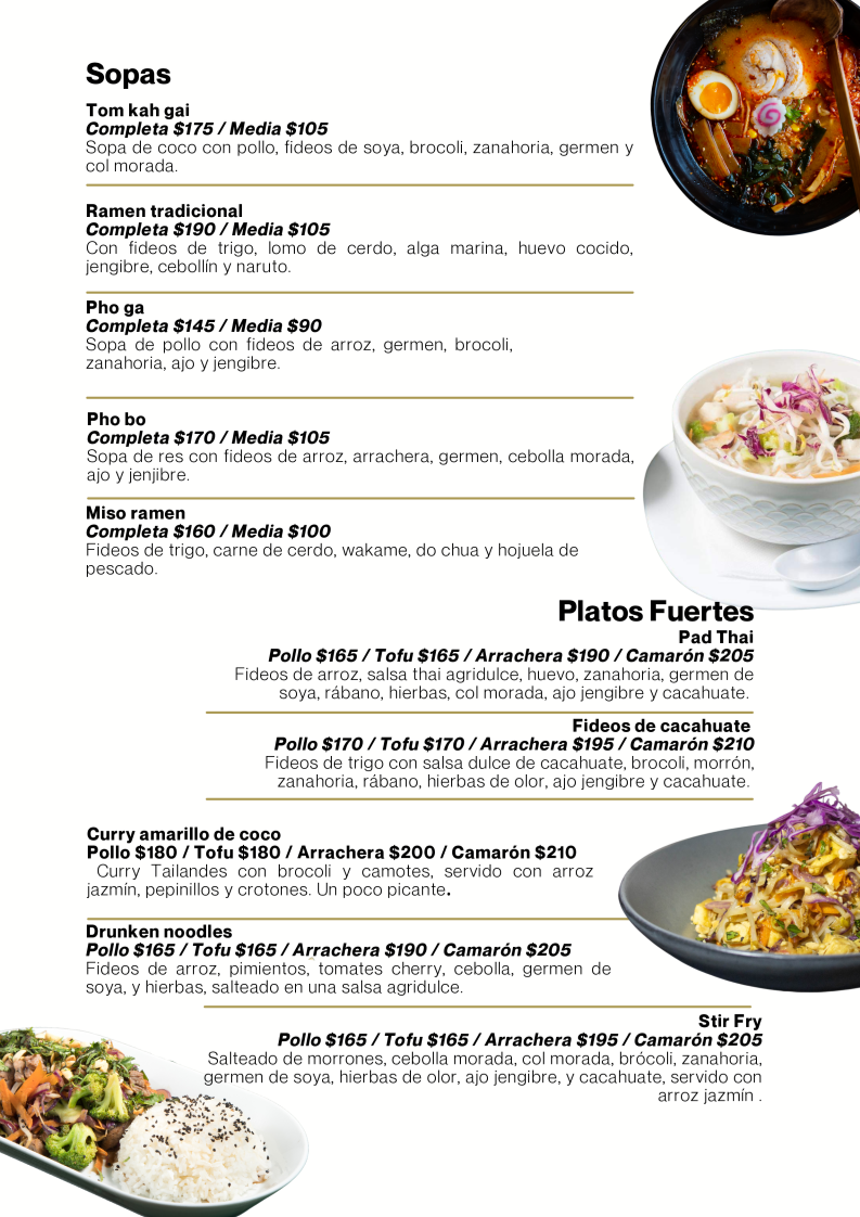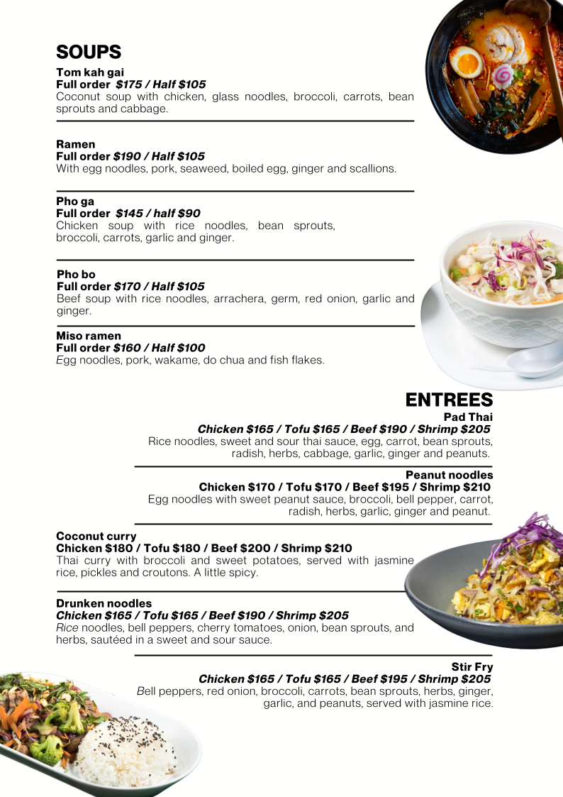 You'll find menu highlights like Drunken Noodles, Pad Thai with shrimp or chicken, and creamy Coconut Curry that come together for a balanced, easy-going meal. Cold noodle bowls and crispy tofu options add refreshing variety, making the menu flexible enough for different moods and times of day. Soups like Pho and rich Miso Ramen are perfect for a quiet lunch or a relaxing evening, while unique salads with fresh mango or seared tuna bring a lighter, vibrant option to the table.